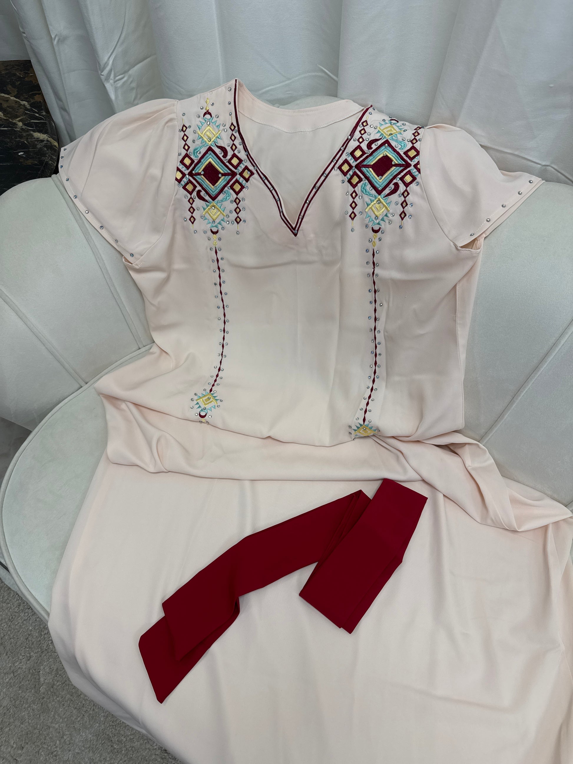 Robe brodé avec ceinture